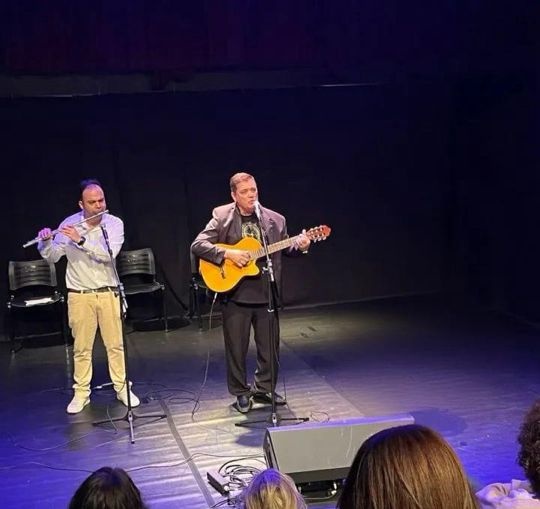 A apresentação é costurada por histórias e curiosidades sobre as músicas, criando uma experiência próxima, sensível e envolvente com o público.