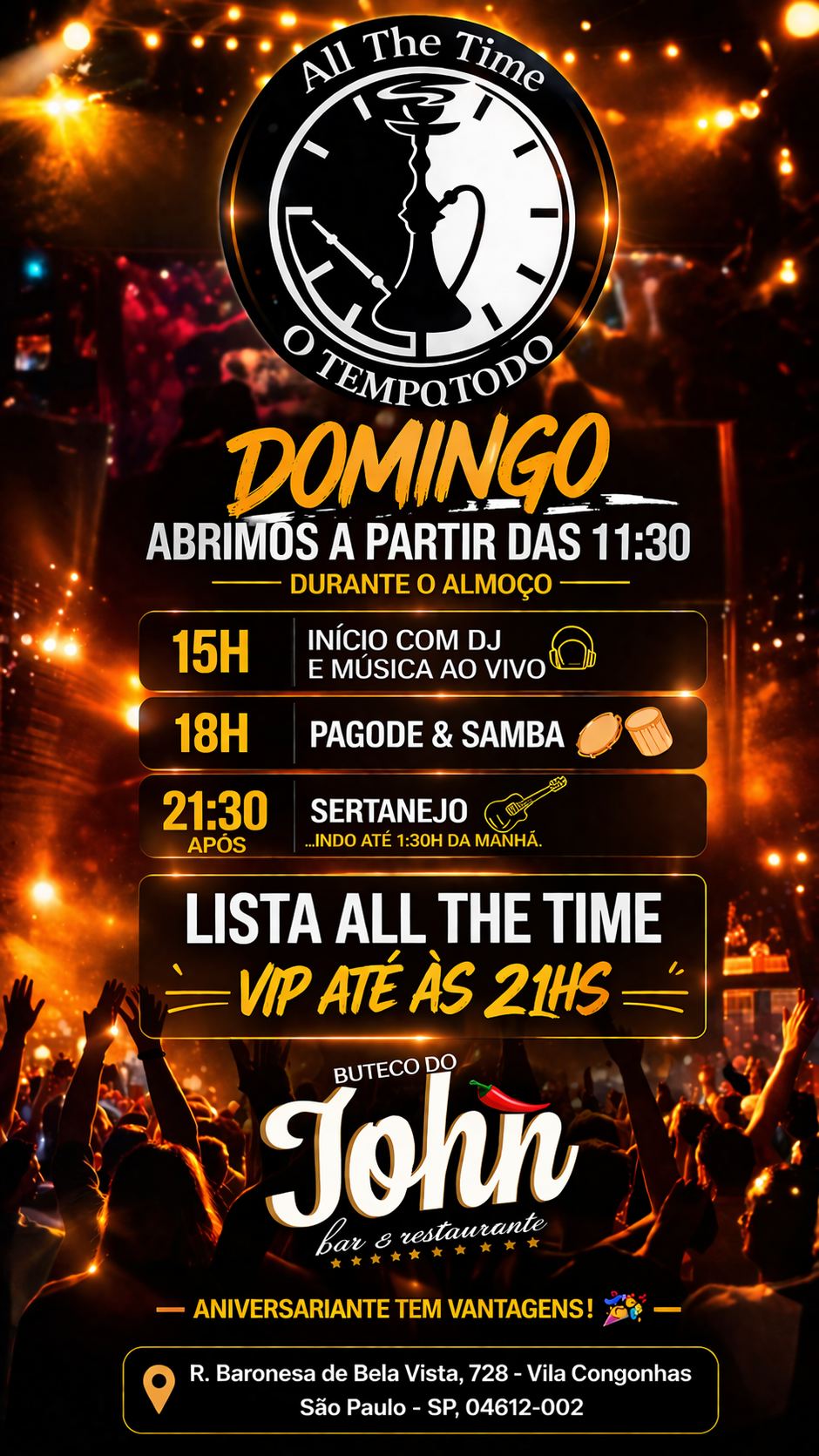 E depois vem o Sertanejo às 21:30 até 1:30 da manhã