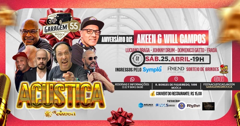 No dia 25 de abril, a tradicional Festa Acústica Happy Hour chega em uma edição especial de aniversário, celebrando os aniversários dos DJs Akeen e Will Campos em uma noite repleta de música e celebração.