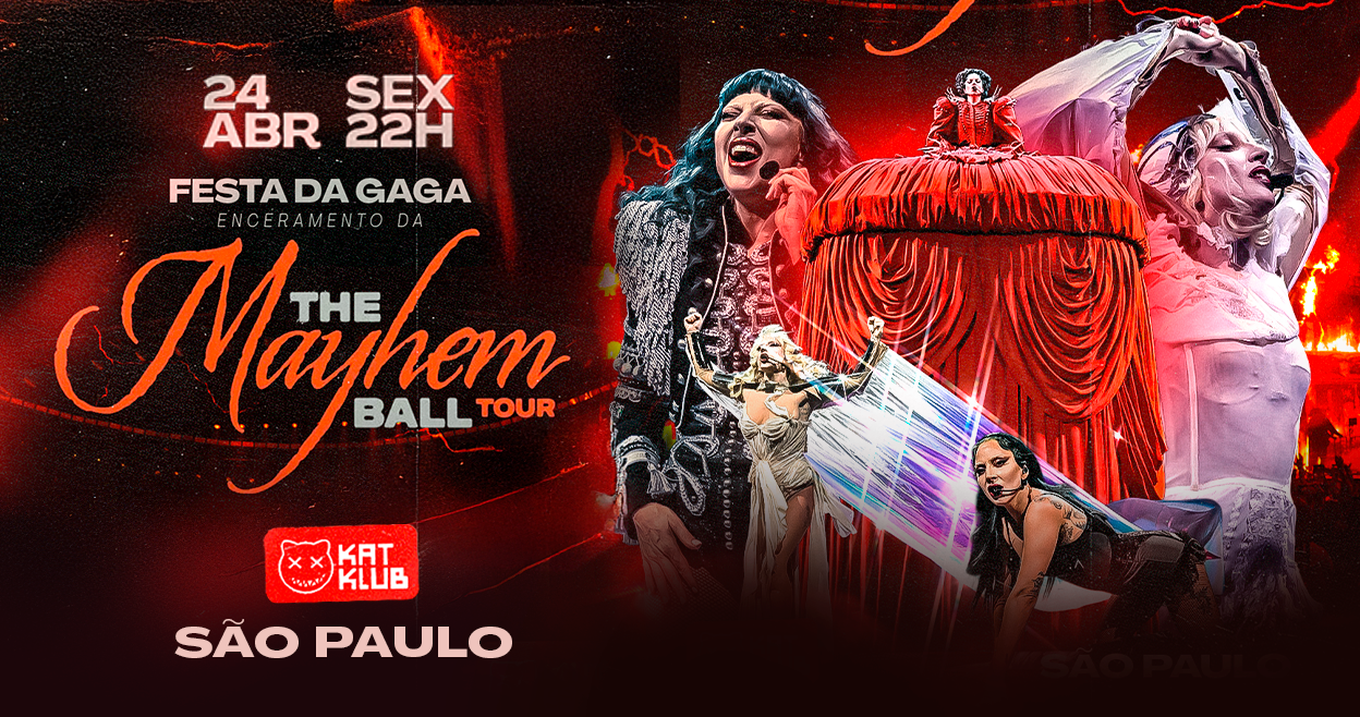 Na sexta, dia 24 abril, vai rolar na Kat Klub uma edição muito especial da FESTA DA GAGA: ENCERRAMENTO THE MAYHEM BALL TOUR!