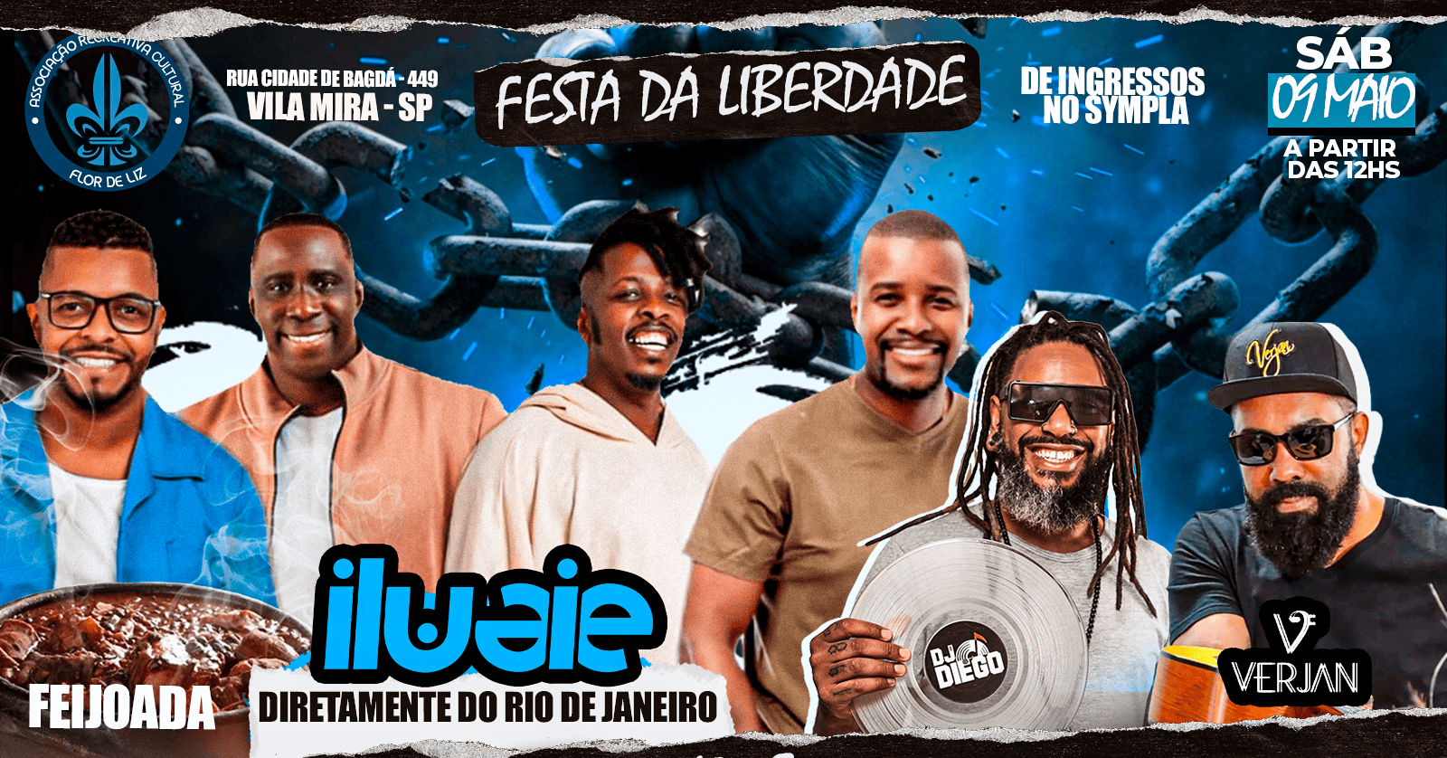 No dia 09 de maio, a partir do meio-dia, a quadra da Escola de Samba Flor de Liz vai tremer com um evento especial que celebra história, cultura e resistência!
