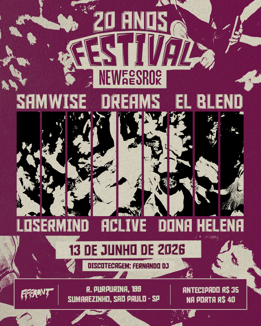 O New Faces Rock celebra seus 20 anos com um line-up cheio de peso com as bandas: Samwise, Dreams, El Blend, Losermind, Aclive e Dona Helena e discotecagem cheia de nostalgia com o DJ Fernando.