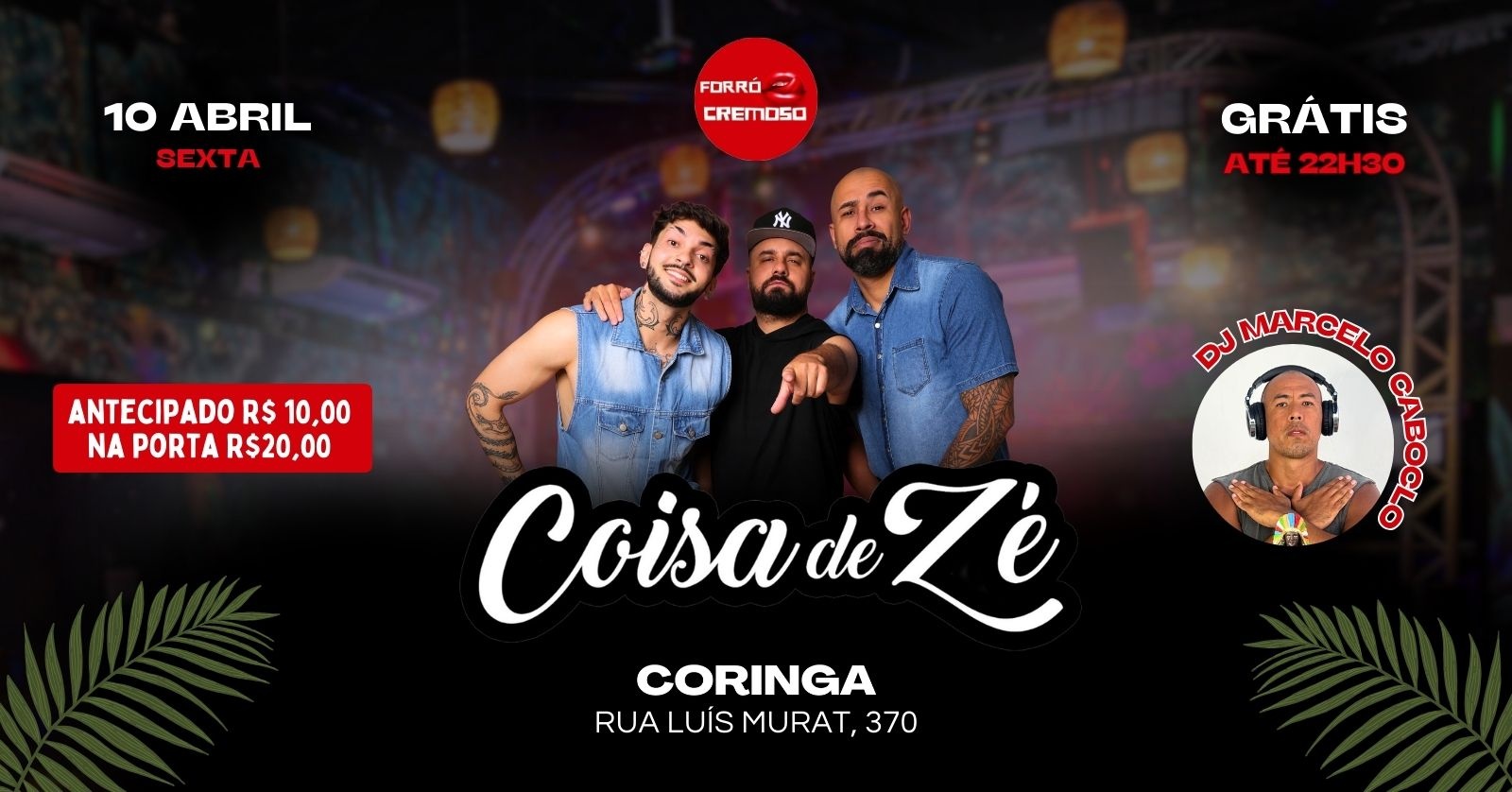 Dia 10 de Abril, SEXTA, o Forró Cremoso, traz COISA DE ZÉ e DJ MARCELO CABOCLO para mais uma noite Inesquecível.
