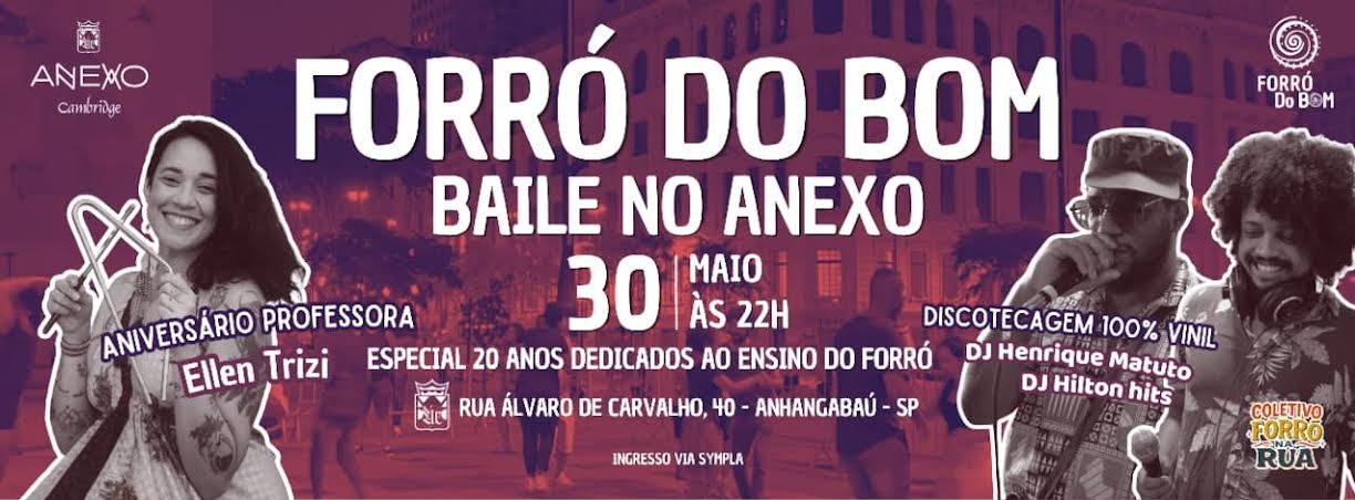 Nesta noite especial, comemoramos marcos que definem a história do Forró na capital paulista, os 24 anos de carreira artística da Ellen e seus 20 anos dedicados ao ensino do Forró. Idealizadora do projeto Forró do Bom, que há 4 anos ocupa o Vale do Anhangabaú com aulas gratuitas, ela convida toda a comunidade para celebrar esta jornada em grande estilo!