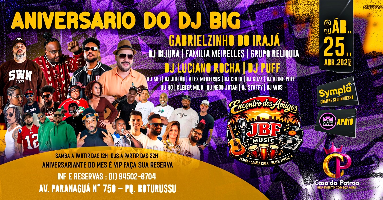 No dia 25 de Abril, o DJ Big celebra seus 4.1 anos em uma festa que promete entrar para a história!
