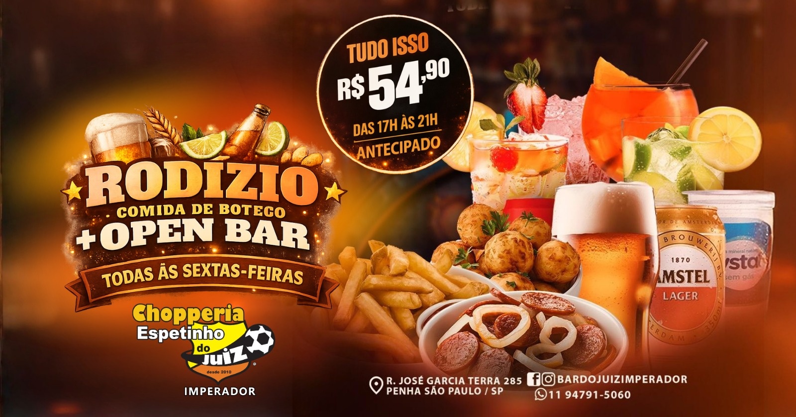 Sextou com OPEN BAR E COMIDA DE BOTECO!
