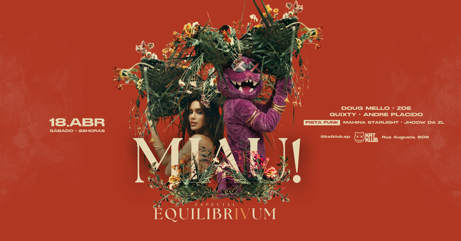 A MIAU ESPECIAL EQUILIBRIVM do dia 18/04, sábado, traz os novos hits da queen e todos aqueles do pop e do funk que a gente não sabe viver sem! Então vem preparado pra ouvir música nova, dançar as clássicas e ferver sem parar nem por um segundo!