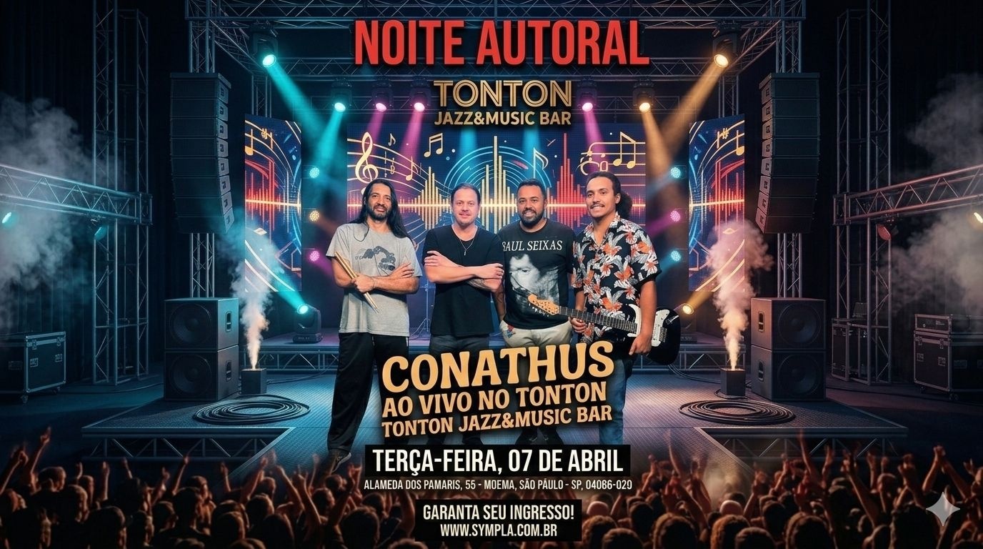 A banda Conathus se apresenta na terça-feira dia 07 de abril de 2026 no Tonton Jazz & Music Bar. Esperamos por você na Alameda dos Pamaris, 55 - Moema, São Paulo - SP, 04086-020 a partir das 20:30. Um show inesquecível, venha fazer parte desse momento.