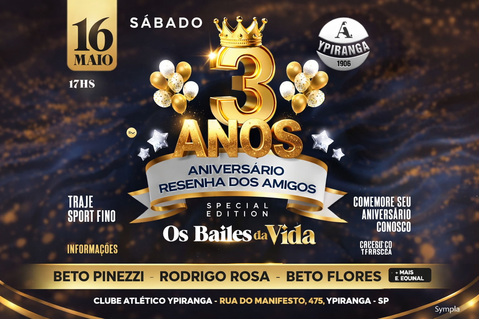 Prepare-se para uma noite inesquecível no tradicional Clube Atlético Ypiranga, a partir das 17h, reunindo amigos, amantes da boa música e da dança em um ambiente de celebração, elegância e muita energia positiva.