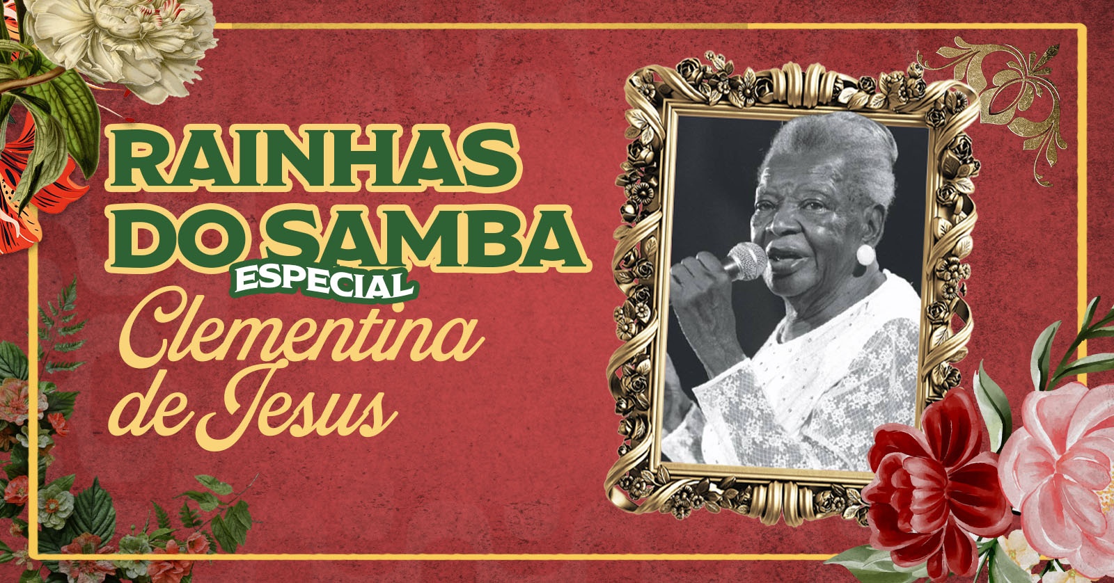 A Embaixada da Harmonia e Alegria, junto à Casa de Samba Eulália, homenageia a incomparável Clementina de Jesus, guardiã das raízes mais profundas do samba brasileiro. Com sua voz ancestral e presença única, Clementina revelou ao Brasil a força dos jongos, cantos de trabalho e tradições afro-brasileiras que moldaram o nosso samba. Um tributo a quem transformou memória, espiritualidade e resistência em canto — e eternizou a alma do povo em cada verso.