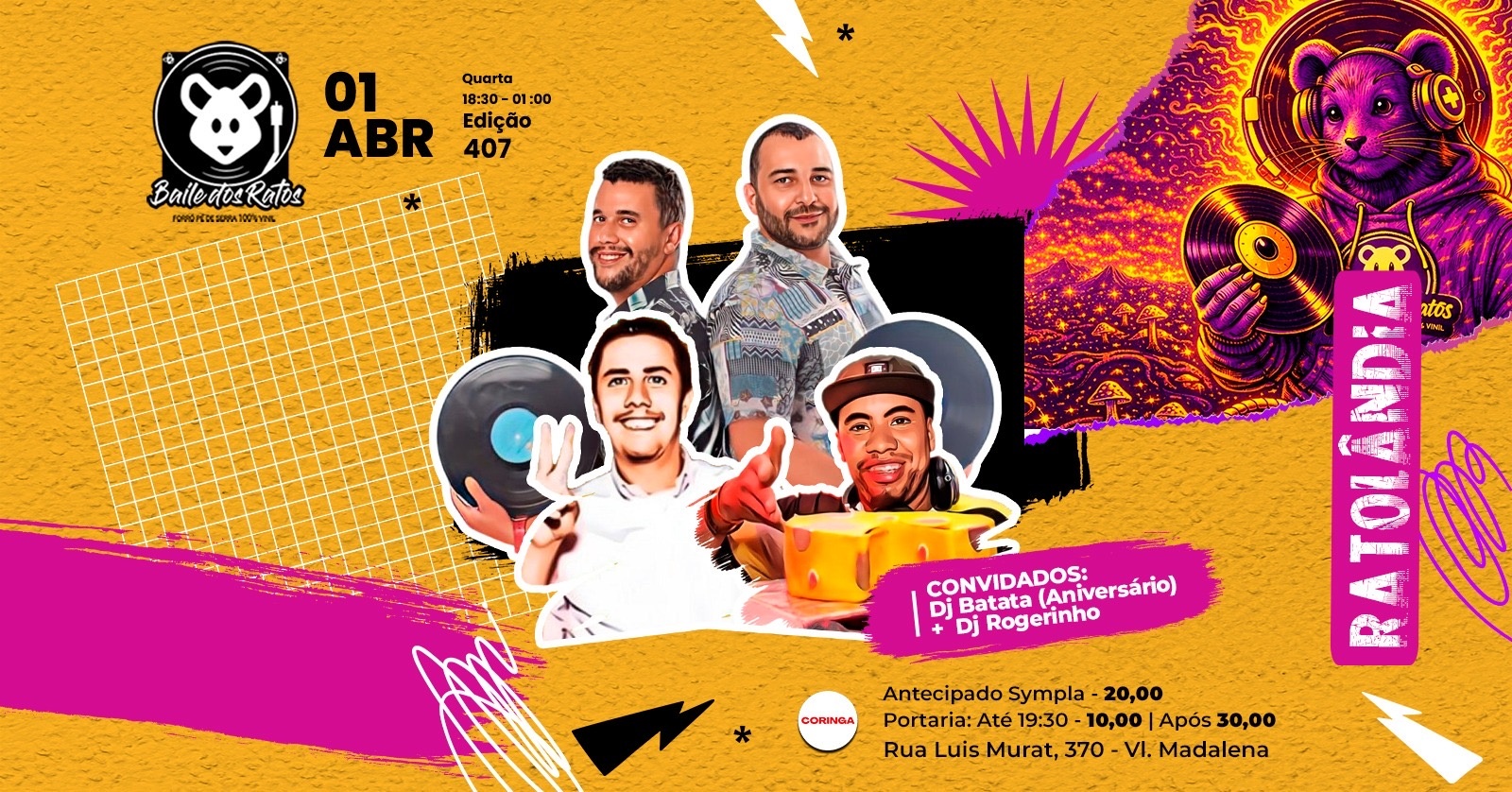 Chegamos a edição 407 da Ratolândia e teremos o prazer de receber o DJ Batata, aniversariante do dia, e o DJ Rogerinho Mocambo.