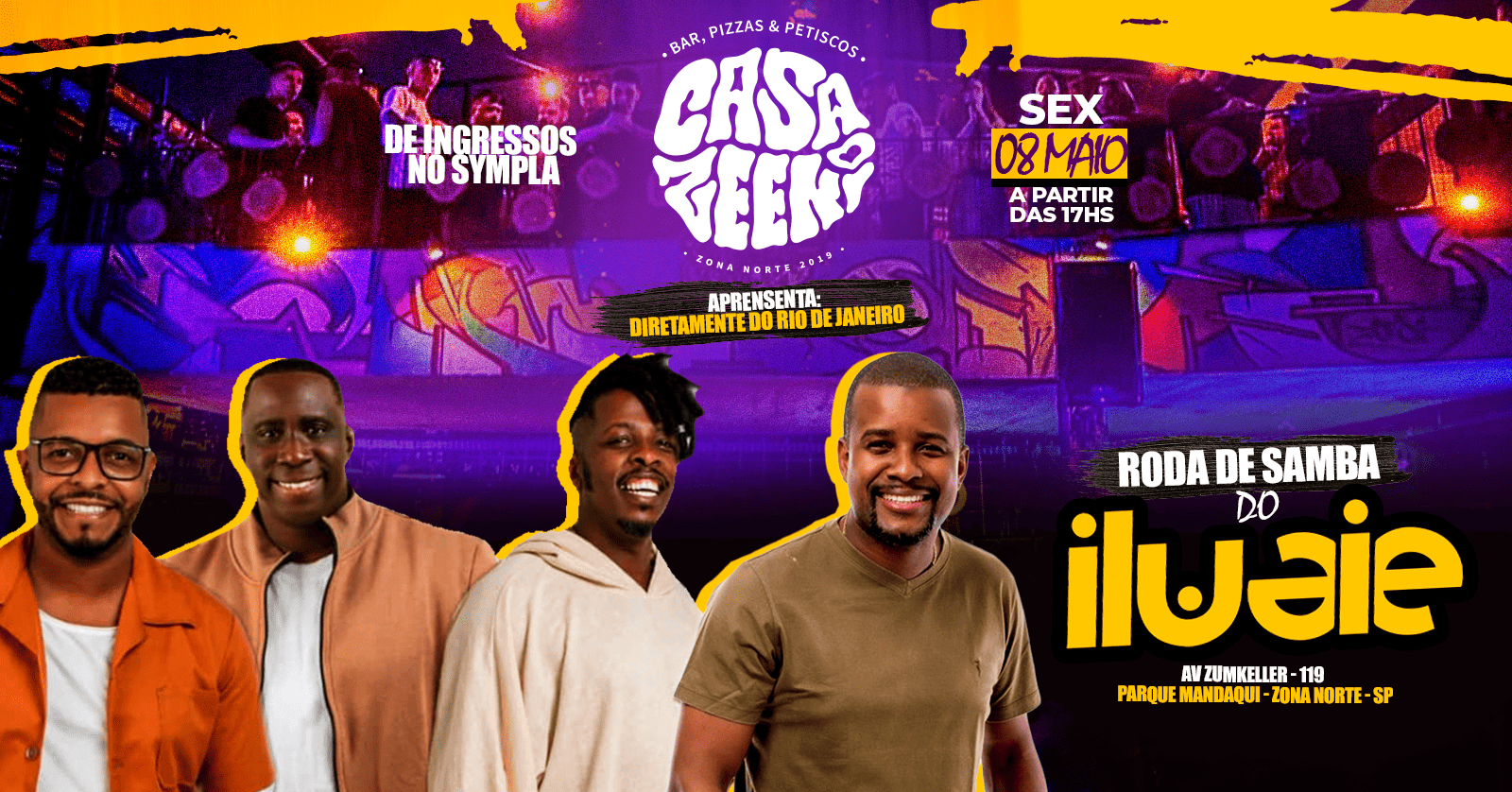 No dia 08 de maio, a partir das 17h, a Casa Zeeni recebe a roda de samba do Grupo Iluaie , trazendo aquele clima gostoso, leve e envolvente que a gente ama.