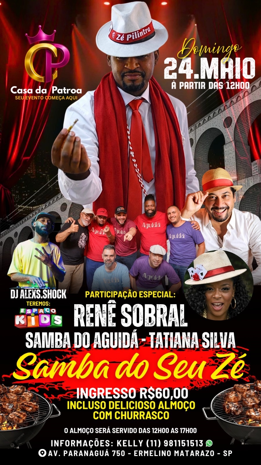 O SAMBA DO SEU ZÉ, é um samba de roda realizado pela Associação Ile Ase Omi Ala Ade. Que irá acontecer na Casa da Patroa no dia 24/05/2026 a partir das 12 horas.