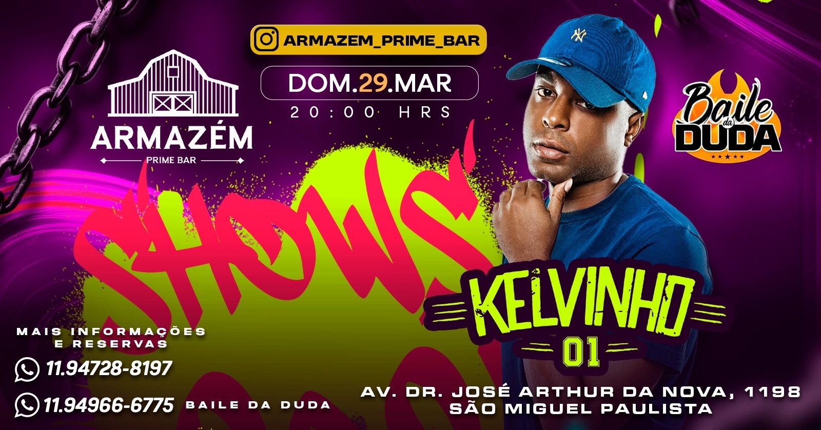 No dia 29/03, o Armazém Prime vai ferver com o show do Mc Kelvinho!