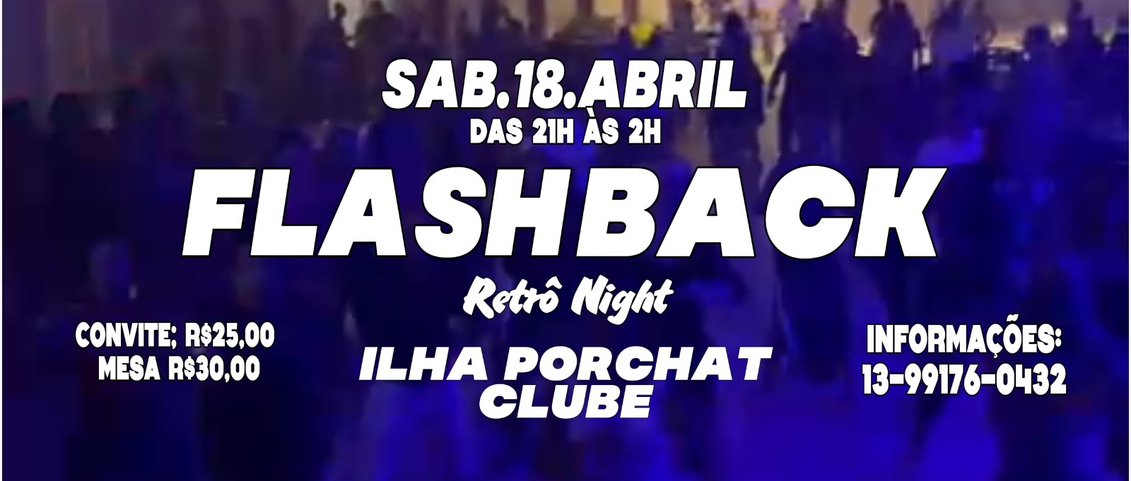 Sábado 18 de abril tem mais um Flashback Retrô Night. Uma super festa com o melhor dos anos 70, 80 e 90, com os melhores djs do litoral.