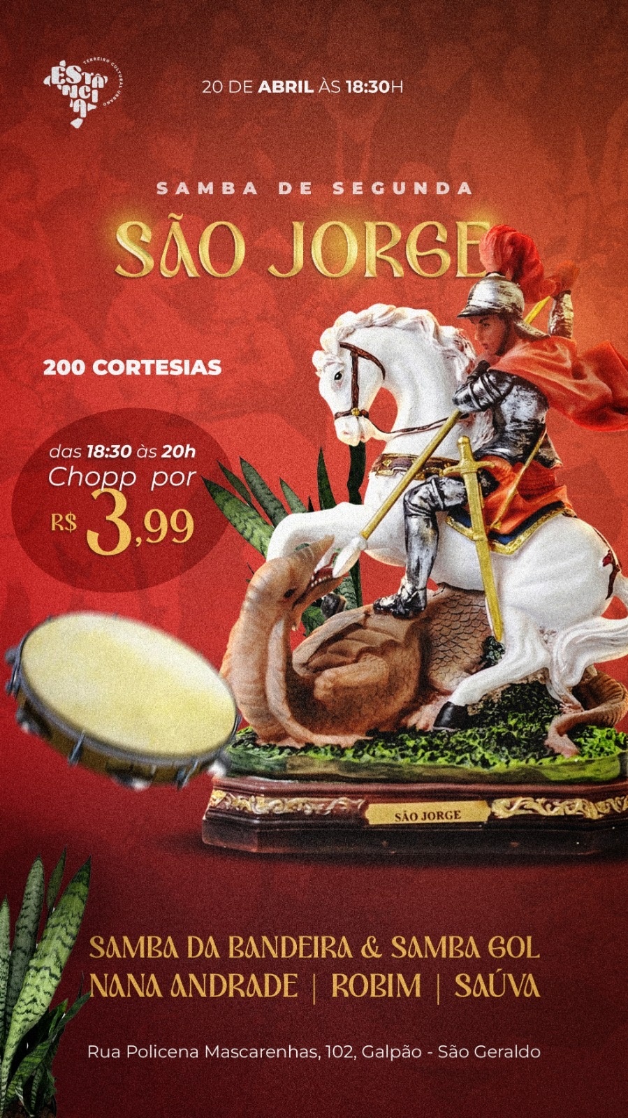 Dia 20/04 o Samba de Segunda canta pro nosso São Jorge Guerreiro!
