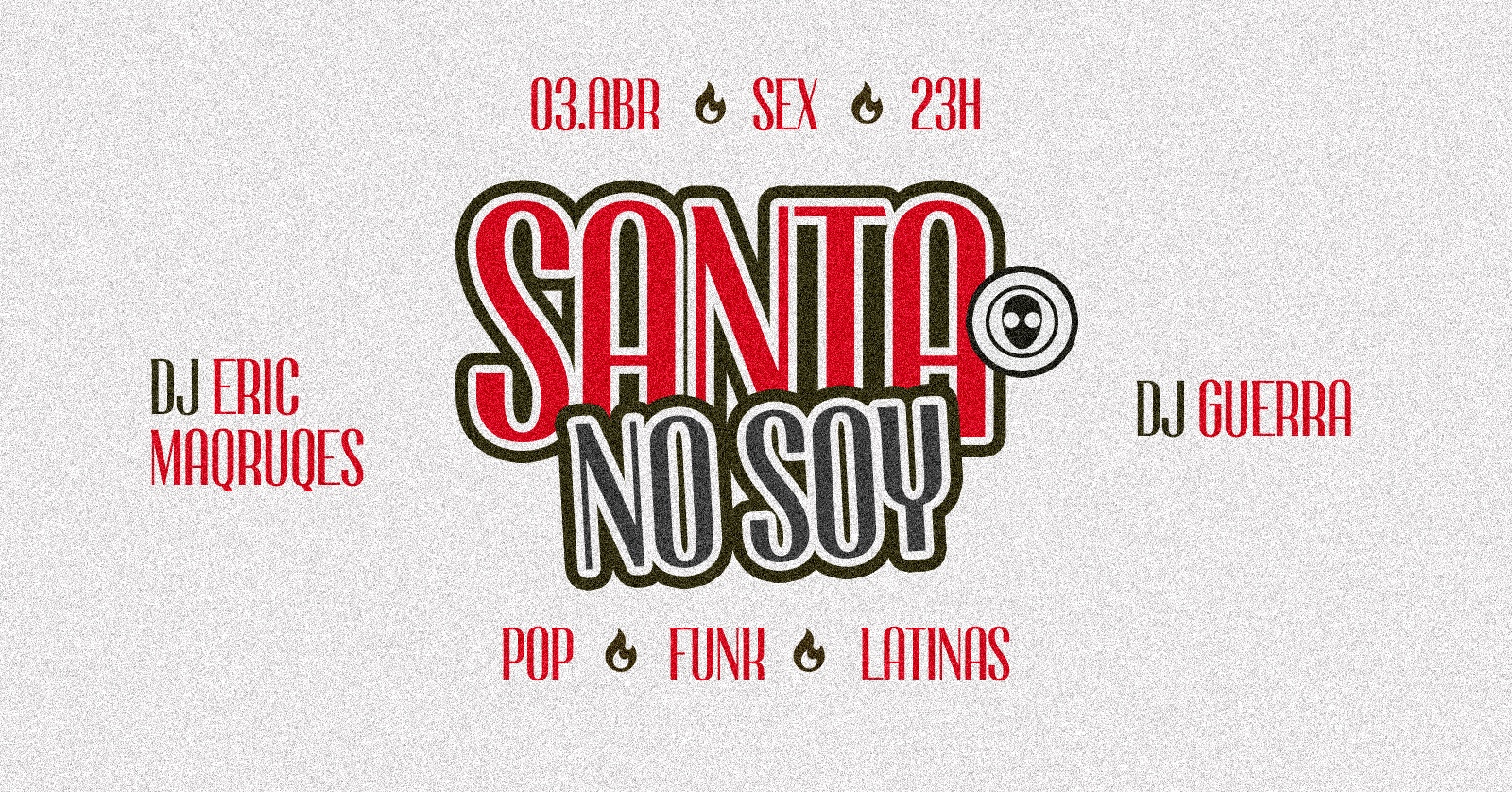 Se o feriado é santo, a gente não sabe, mas o nosso com certeza não vai ser! A festa SANTA NO SOY chega pra provar que ninguém aqui é anjo quando o grave bate.