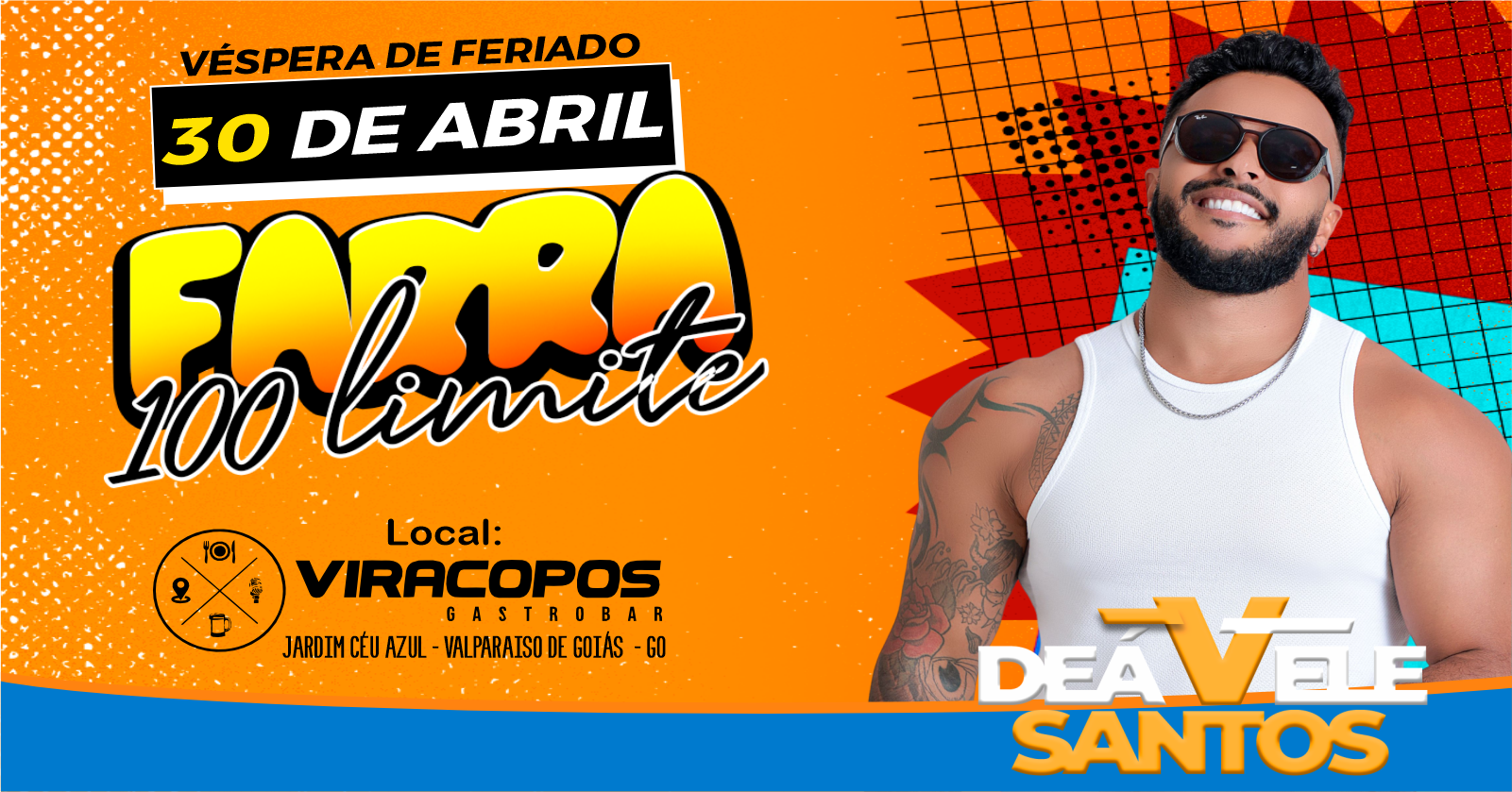 Dia ( 30/04) QUINTA FEIRA VÉSPERA DE FERIADO, tem pela primeira vez DEAVELE SANTOS (ao Vivo), A partir das 19h, no Viracopos Gastrobar - Céu Azul - Valparaiso de Goiás