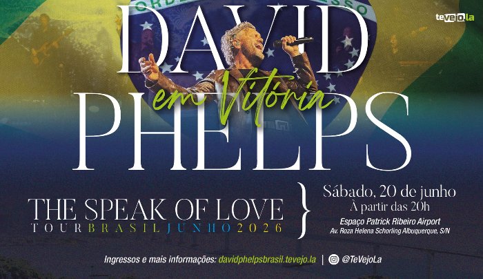 E a boa notícia é que após sete anos, David Phelps, o maior cantor cristão do mundo, retorna ao Brasil com sua turnê The Speak Of Love Tour, com data confirmada em Vitória, ES, sábado, 27 de junho no Espaço Patrick Ribeiro Airport.