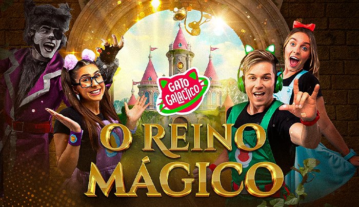 O Reino Mágico é o novo espetáculo do Gato Galactico — um show ao vivo que celebra o poder mágico dos sonhos e a capacidade única que cada criança tem de imaginar, criar e transformar o próprio futuro.