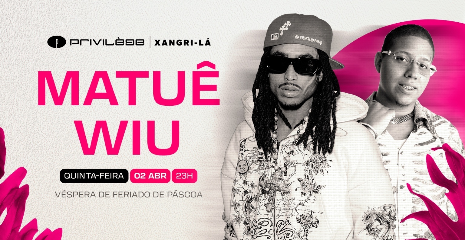 Matuê e WIU chegam ao Privilege Xangri Lá em noite histórica na véspera de feriado de Páscoa O Privilege Xangri-Lá recebe, na quinta feira, 02 de abril, a partir das 23h, um dos encontros mais aguardados do ano: Matuê e WIU, dois dos maiores nomes da música trap, sobem ao palco em uma noite que promete entrar para a história do litoral gaúcho. Conhecidos por arrastarem multidões em todo o Brasil, os artistas chegam com repertórios repletos de hits, presença de palco marcante e toda a força que transformou seus shows em verdadeiras experiências para o público. A apresentação reúne duas potências da cena em um evento especial de véspera de feriado de Páscoa, unindo música, energia e uma atmosfera única em uma das casas mais desejadas do sul do país. Com produção pensada para entregar uma noite de grande impacto, o evento promete movimentar Xangri Lá e reunir fãs de diferentes regiões para viver uma experiência intensa, com estrutura premium, público seleto e o clima inconfundível do Privilege. Serviço Evento: Matuê e WIU Data: Quinta feira, 02 de abril Horário: 23h Local: Privilege Xangri Lá classificação : 18 anos reservas e camarotes @privilegesul